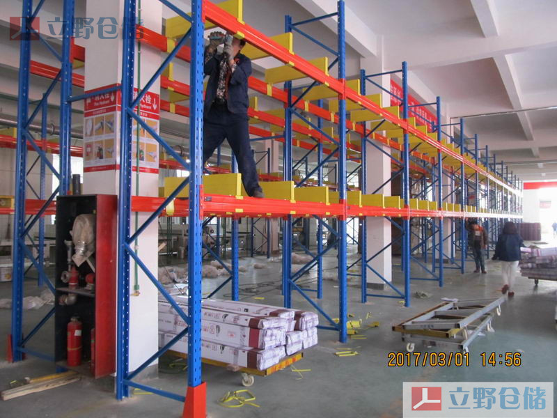 重型貨架,又稱橫梁式貨架,或稱貨位式貨架,屬于托盤貨架類,在國內的各種倉儲貨架系統中最為常見一種貨架形式。以立柱片+橫梁形式的全組裝結構,結構簡明有效??筛鶕鎯卧b設備的特性加裝隔檔、工字跨梁、井字跨梁、鋼層板(木層板)、網層板、倉儲籠導軌、豎向跨梁等附件。滿足不同單元集裝設備形式的貨物存儲。此類貨架在高位倉庫和超高位倉庫中應用最多(自動化立體倉庫中貨架大多用此類貨架)。